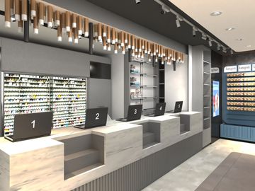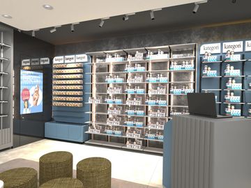 Satış metrekaresi sınırlı olan bu projede; ilaç alanı ve reçete bankosu tasarımı, modern ve rahat çalışma olanağı sağlamakta ve aynı zamanda görsel olarak da müşterileri sıcak bir şekilde karşılamaktadır.