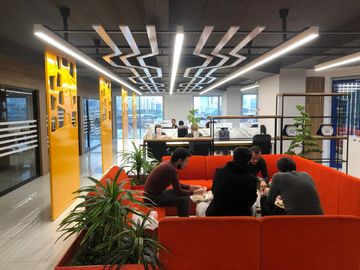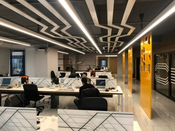 DİKEY ÇİZGİLERDEN OLUŞAN ESKİ OFİS YAPISINI, ORGANİK FORMDA AKUSTİK PANELLER VE YENİ AYDINLATMA KURGUSUYLA 35 GÜNLÜK BİR SÜREDE DEĞİŞTİRDİK.